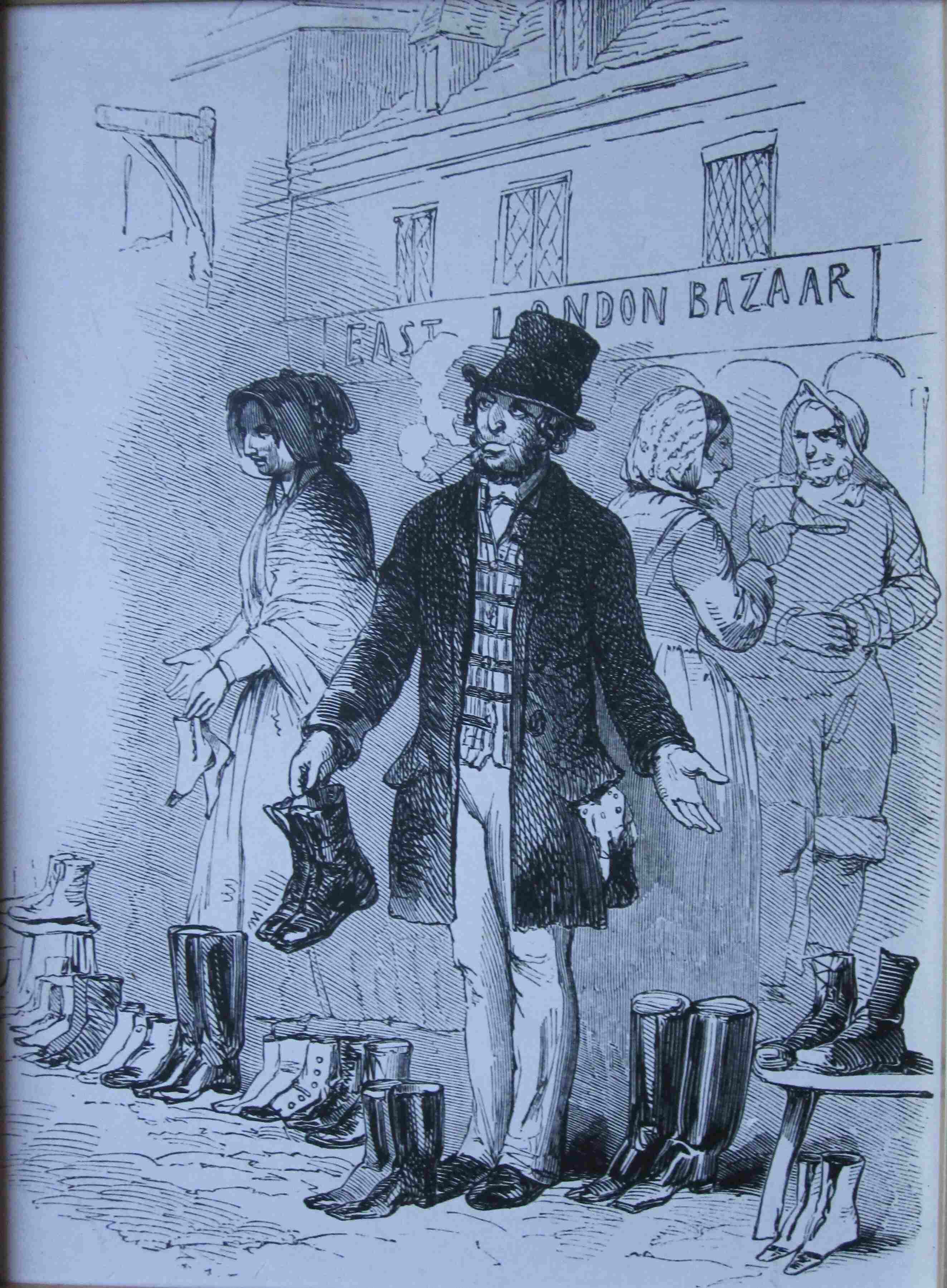 33 A print of a Jewish secondhand boot seller in an East End bazaar – perhaps the forerunner of Petticoat Lane?
