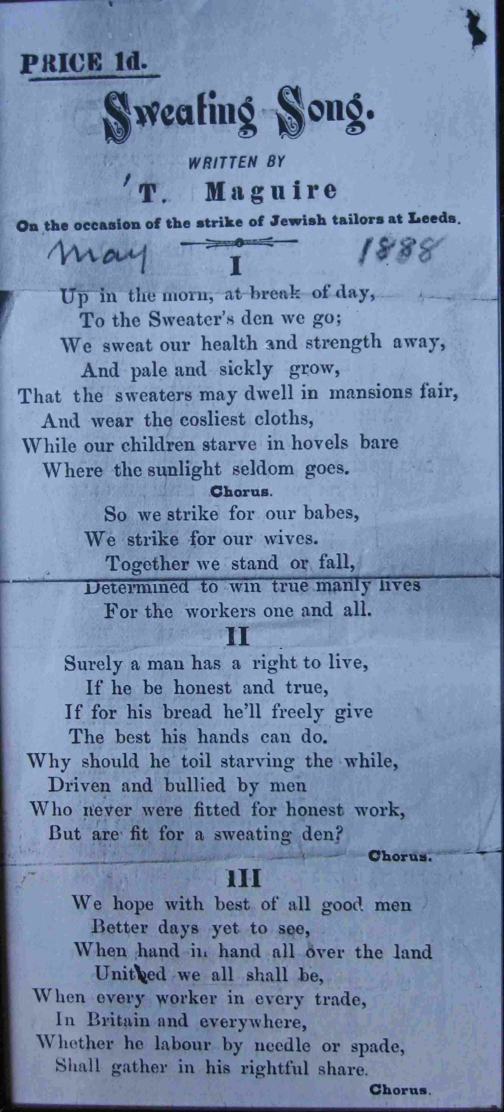 8 The ‘Sweating Song’, which referred to working conditions in tailoring workshops, many of them Jewish owned and staffed |