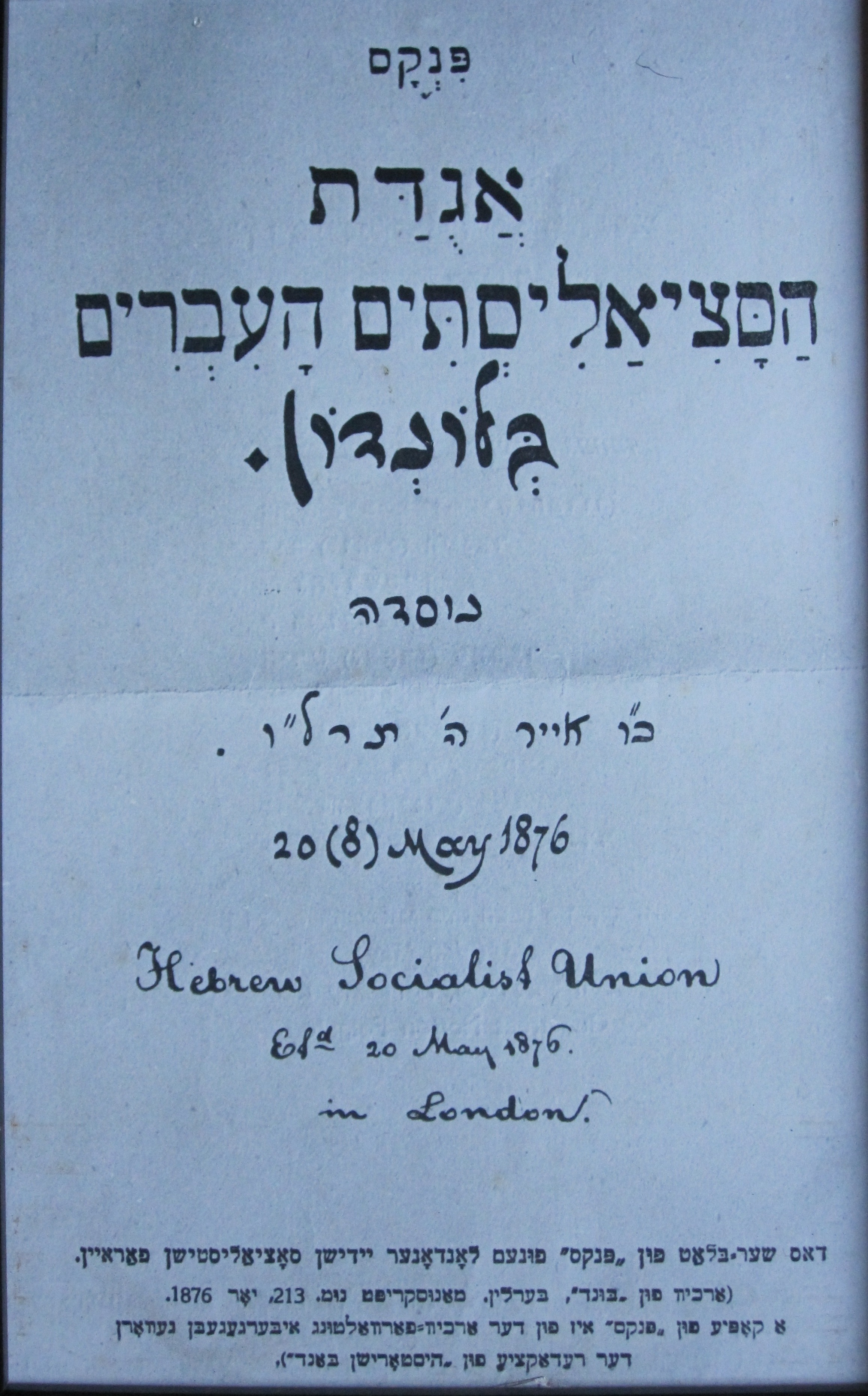 12 Front page of the Hebrew Socialist Union pamphlet 1876 |