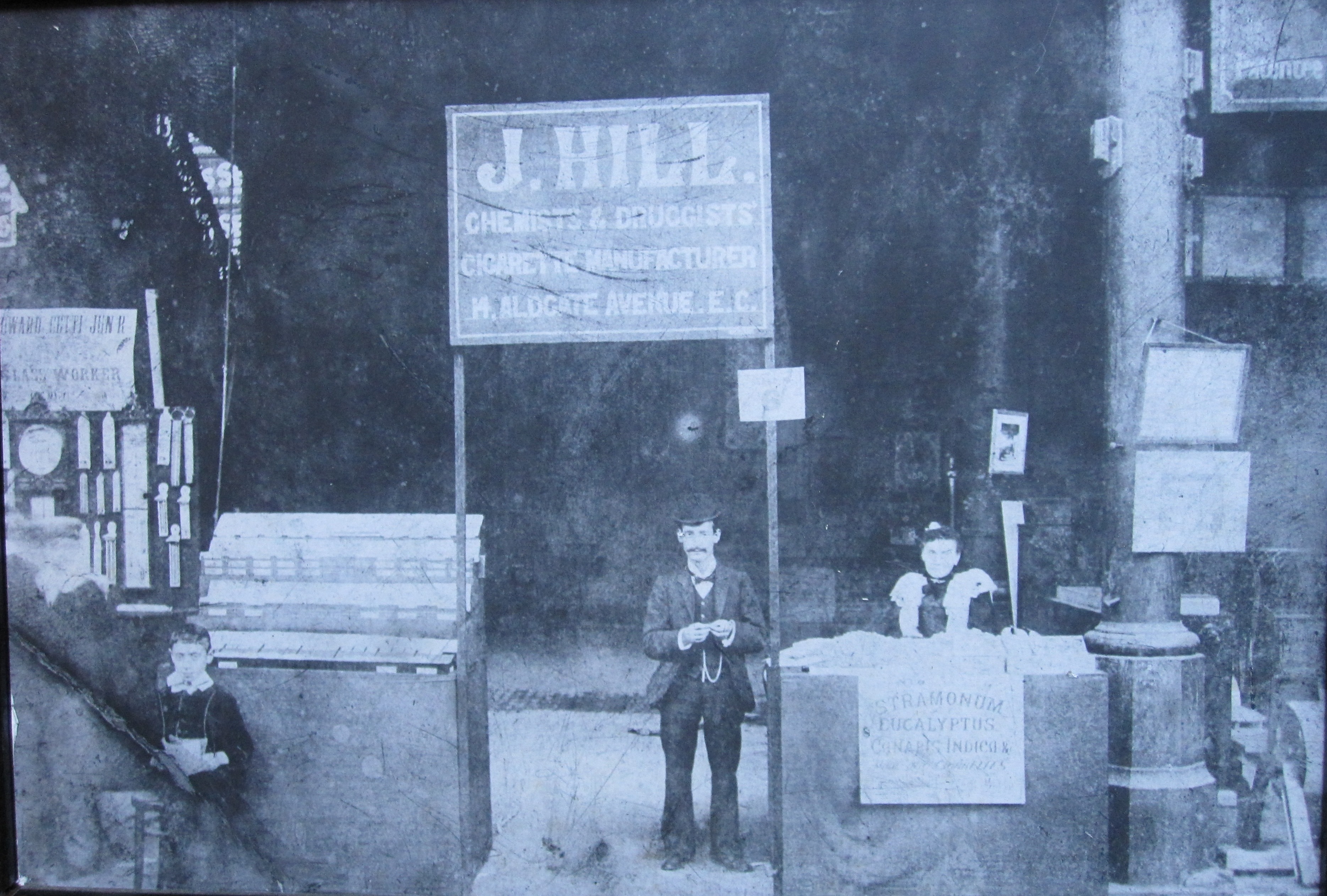 East End shopping Late 19th century view of Jewish owned chemist’s shop, Aldgate