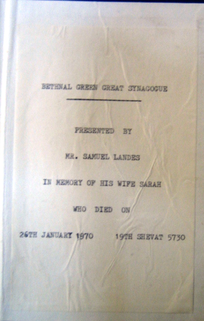 Bethnal Green Great Synagogue Gallery: Second gallery Description: Bookplate from a Bethnal Green Great Synagogue siddur (prayer book)